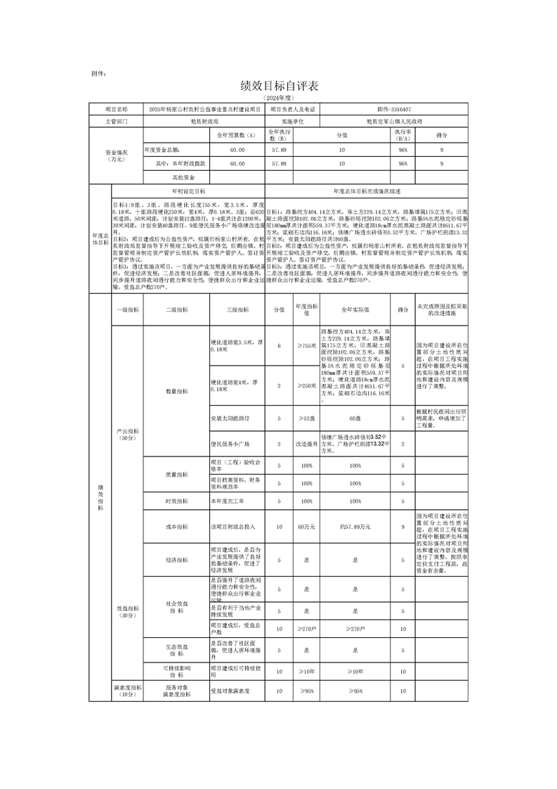 主要对已竣工验收的2025年杨家山村农村公益事业重点村建设项目进行自评。